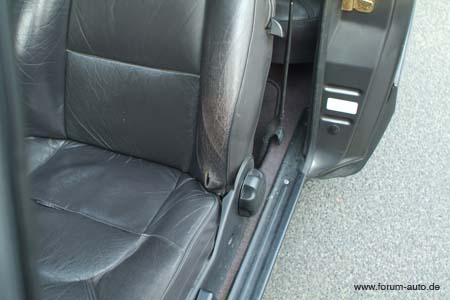 | Neue-Sitzschienen ab Modell 1990 (wie beim Saab 9000): umklapp Sitzsperre bei den dreitürigen Modellen leicht zugänglich seitlich am Sitz |