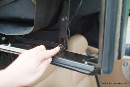 Alte-Sitzschienen bis Modell 1989: Höhenverstellung des Fahersitzes vorne, umklapp Sitzsperre bei den dreitürigen Modellen unten am Gelenk |