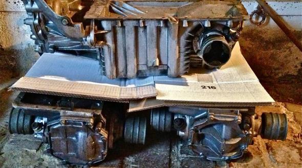 Auf dem Bild sind 3 Getrieben zu erkennen, der 5-Gang 900ter Getriebe ist schon weg.
