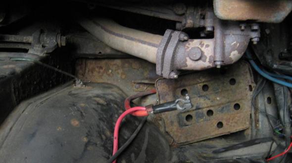 Um die Folgeerscheinungen des schadhaften Massekontaktes am Querträger zu umgehen, habe ich die betreffenden Stromverbraucher wie Scheinwerfer, Hupe usw. mit eigens verlegten Kabeln separat an Masse gelegt. Durch den Massefehler läuft der Wagen jedoch z.Z. nur auf GLD! APC-System an solches ist jedoch okay!