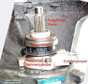 Es kann vorkommen, dass eine evtl. defekte Geberzylinder-Kupplungshydraulik nicht mehr genügend Druck aufbaut, um die Druckplatte ausreichend weit auszurücken, damit man den Spezialring ohne Krampf rundrum einlegen kann. Dasselbe gilt, wenn die Motor/Getriebeeinheit ohne vorher ausgerückte Druckplatte ausgebaut wurde.