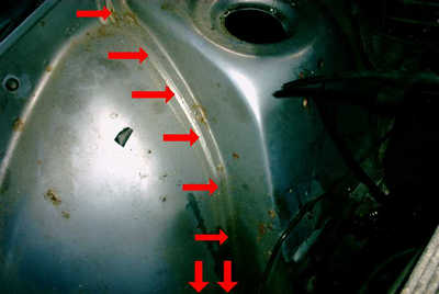 Schweißnaht (durch schlechte Abdichtung) oder die Ecken der Reserveradmulde (durch
